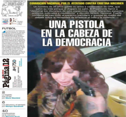 Un ejemplo de agenda setting en las noticias del intento de asesinato de Cristina Kirchner en