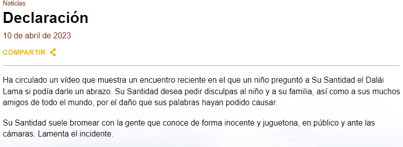 En la siguiente noticia, pertenece a un sitio exclusivo de noticias de Dalai Lama, en donde el